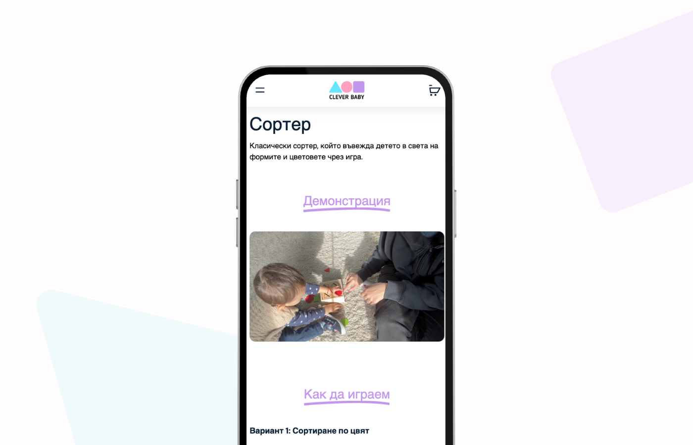 Clever Baby е платформа, посветена на ранното детско развитие. Помагаме на родителите с готова, минималистична система за игра по възраст, която дава спокойствие и увереност всеки ден.