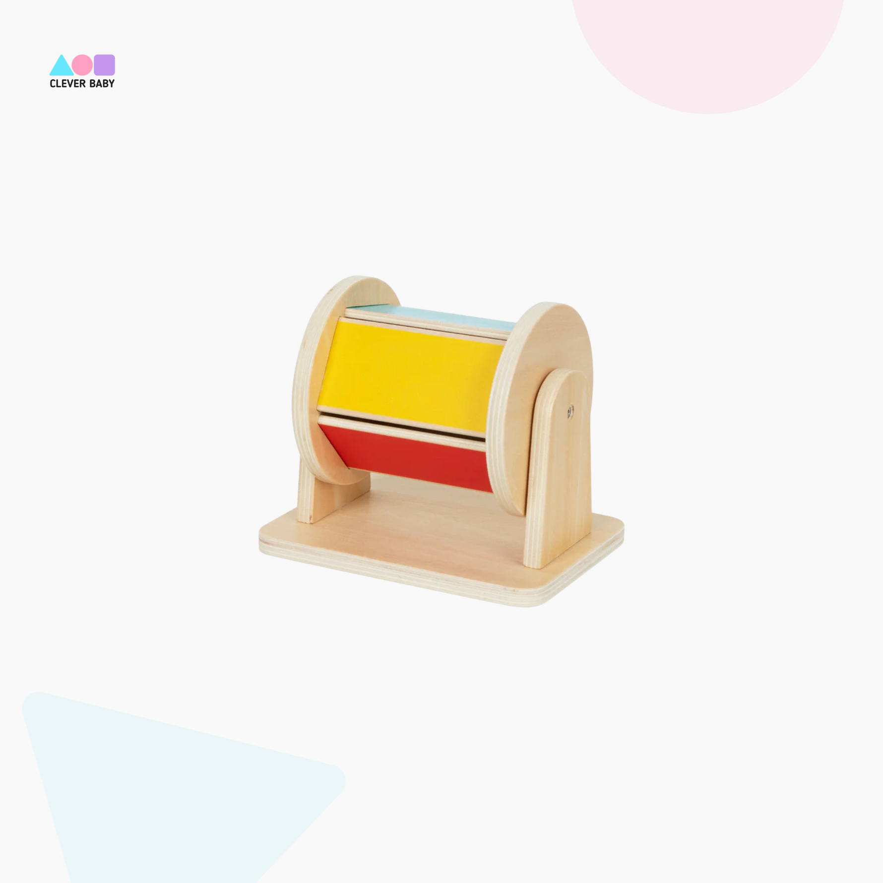 Събужда интереса чрез звук и контрастни картинки, като ангажира зрението, слуха и ръчичките.