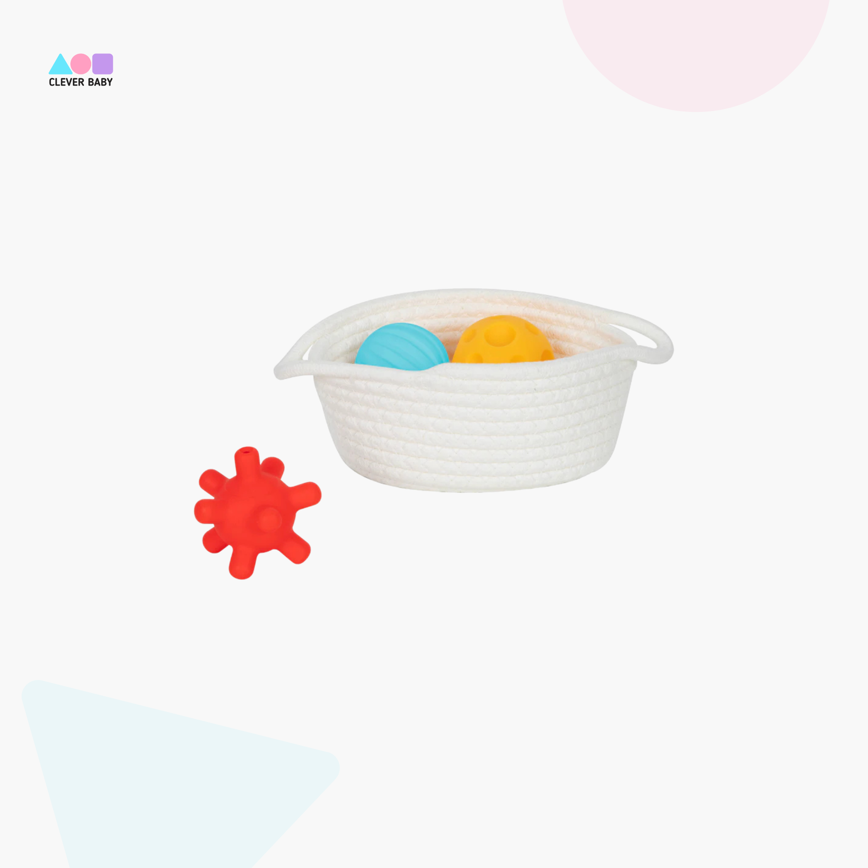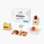В периода между 5-6 месец бебетата започват активно да хващат, дърпат и въртят предмети, защото откриват, че могат сами да предизвикват движения и звуци. Комплектът е създаден да насърчава тези нови умения, като развива координацията, силата в ръцете и усещането за причинно-следствени връзки.